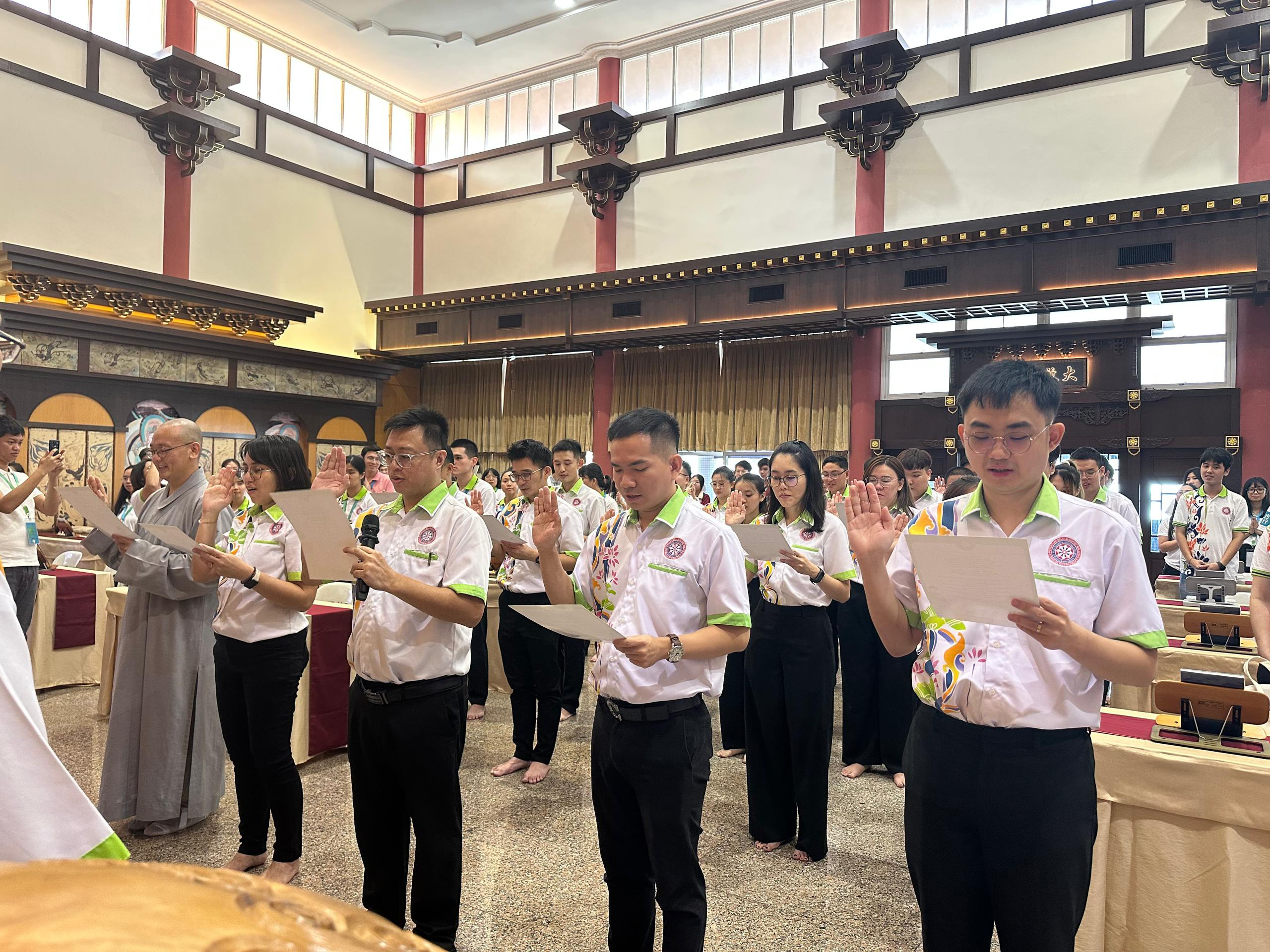 次日的活动以庄严的宣誓就职典礼开始,在宗教顾问传闻法师的见证下,马佛青总会长杨桂荣带领第28届全国理事宣读就职誓词;当宣誓就职典礼结束后,马佛青会务顾问梁国兴和廖国民以”马佛青的理念与承担者格局”为题分享经验。
