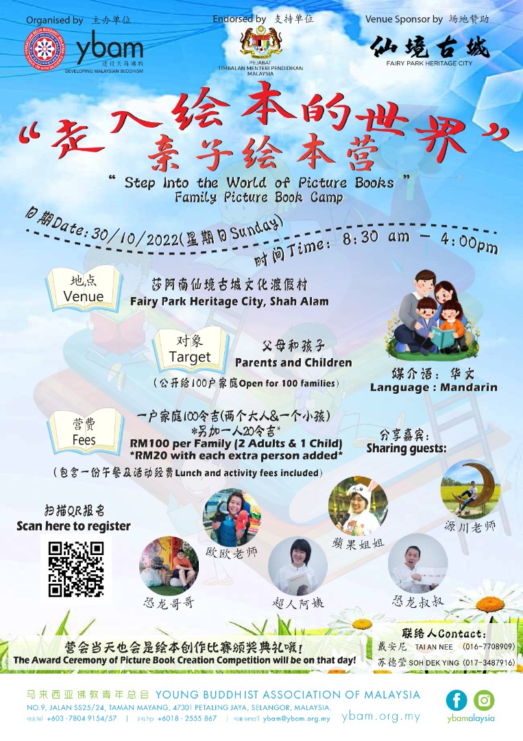 After two years, offline family picture book camp is now available 🥳🥳 The ‘Step into the World of Picture Books’ family picture book camp is organised by the Young Buddhist Association of Malaysia and has been endorsed by the Ministry of Education! By attending this camp, it can fulfil your weekend in addition build a good outlook on life and provide opportunity for parents to accompany their children as they grow together🤩 Details of the event are as follows✨: