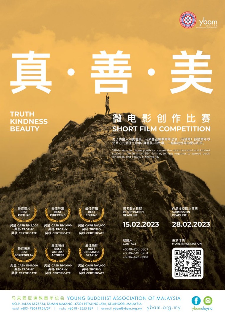 为了传播人间真善美,马来西亚佛教青年总会(马佛青)鼓励青年以短片方式呈现生命中《真善美》的故事,一起推动世界的爱与和平。